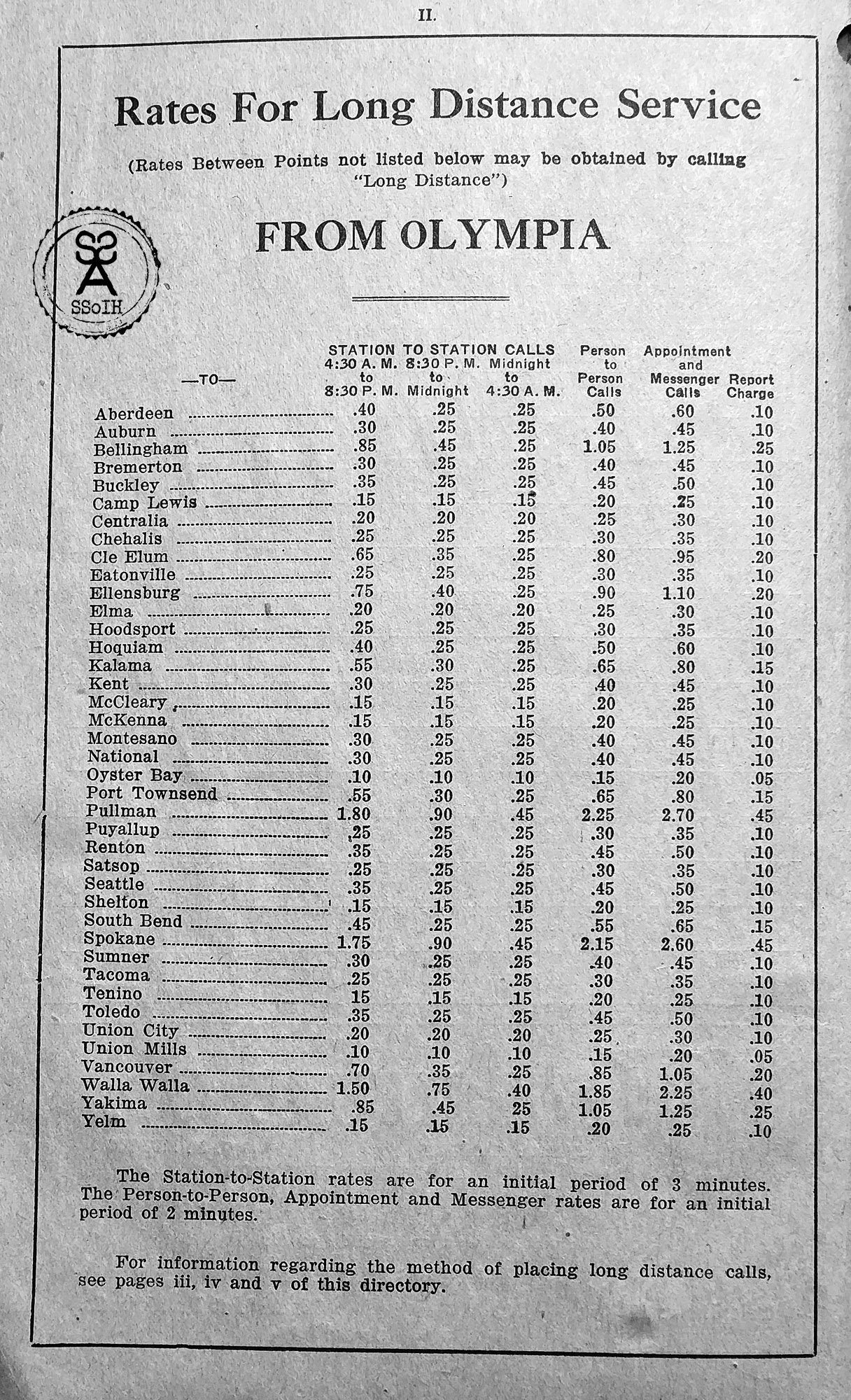 SSoIH.com - Page ii - 1925 Olympia Telephone Directory