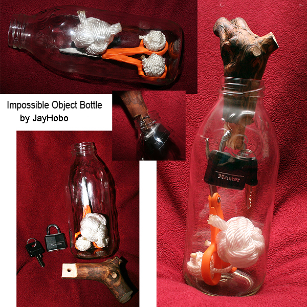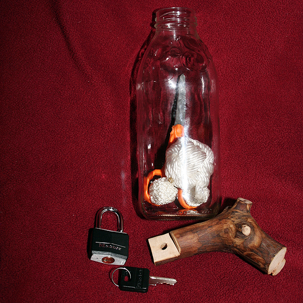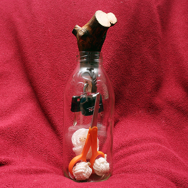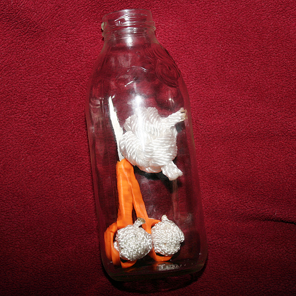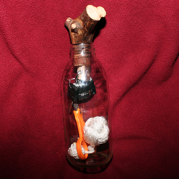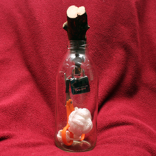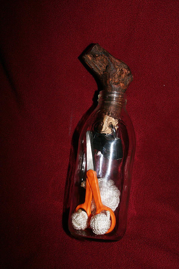 Large Monky's Fist knot and scissors in the bottle ready for the lock and stopper.