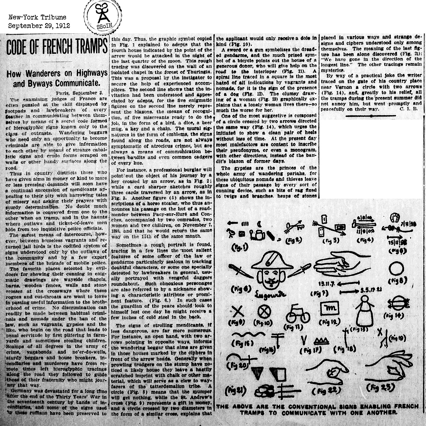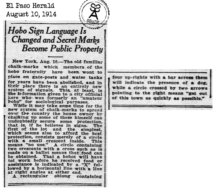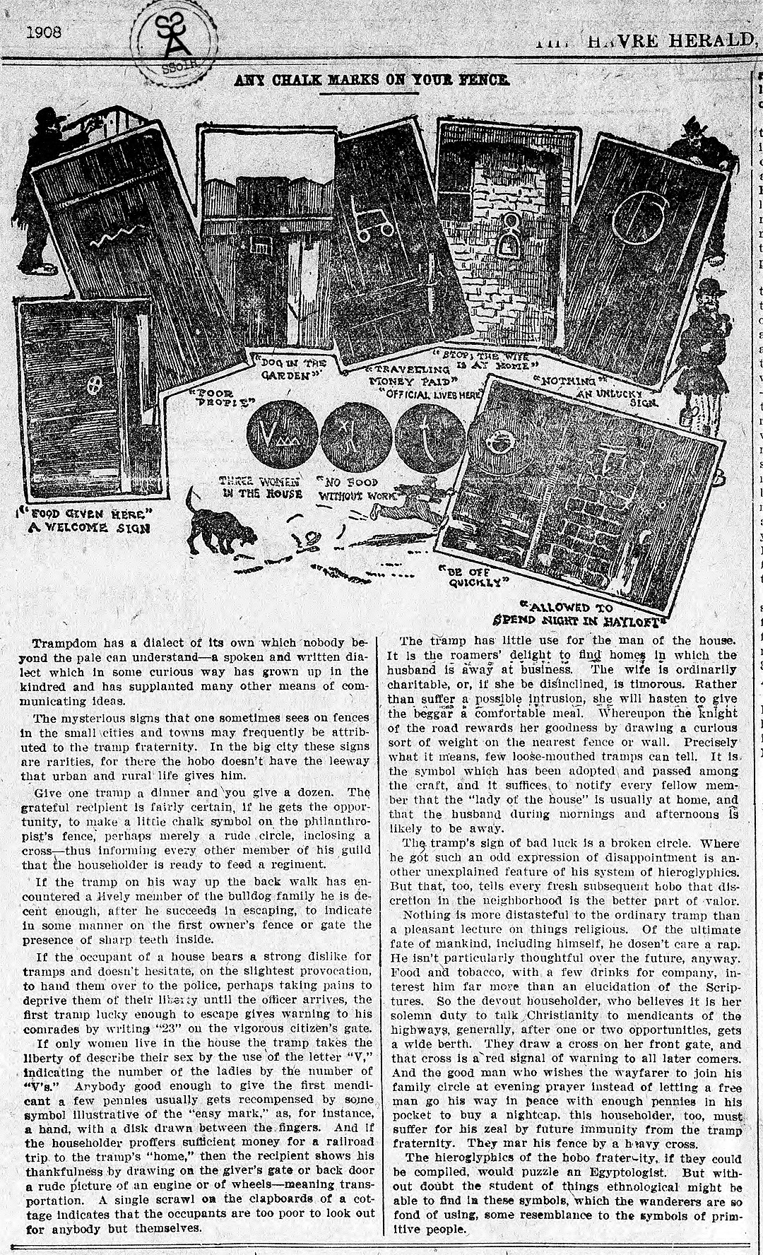 Hobo Sign Language Is Changed and Secret Marks Become Public Property. New York. Aug 10, 1914 | Source Image |