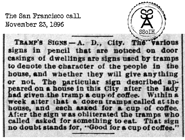 Hoboes used signs, codes if you will to communicate with other hoboes arriving after them conveying the conditions of the town,