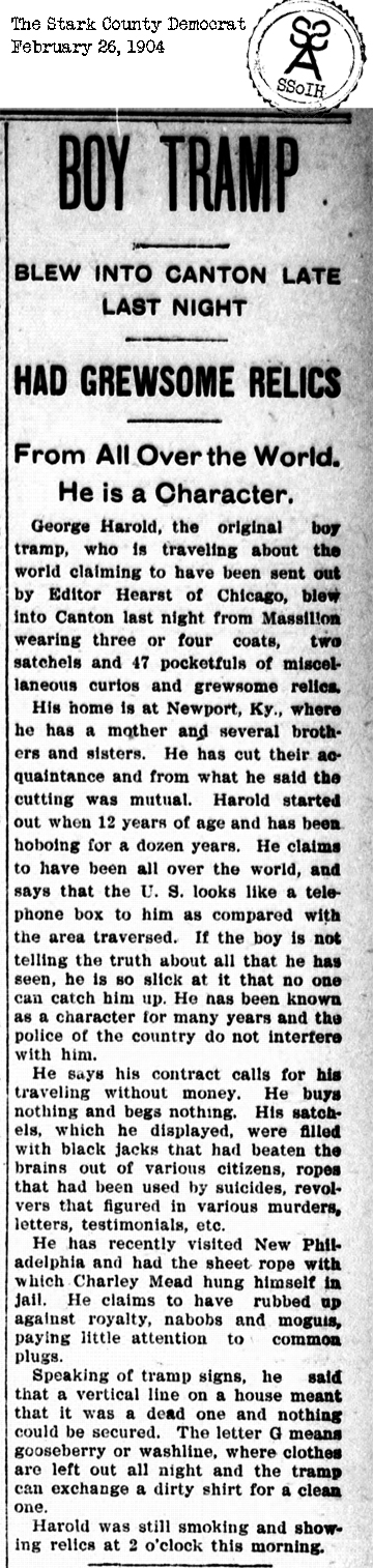Story of a hobo who started at age 12. | = dead house nothing to be secured, G = clothes left out at night. Canton, Ohio. Feb. 26, 1904 ( CTRL-Mouse Wheel will zoom ) |
