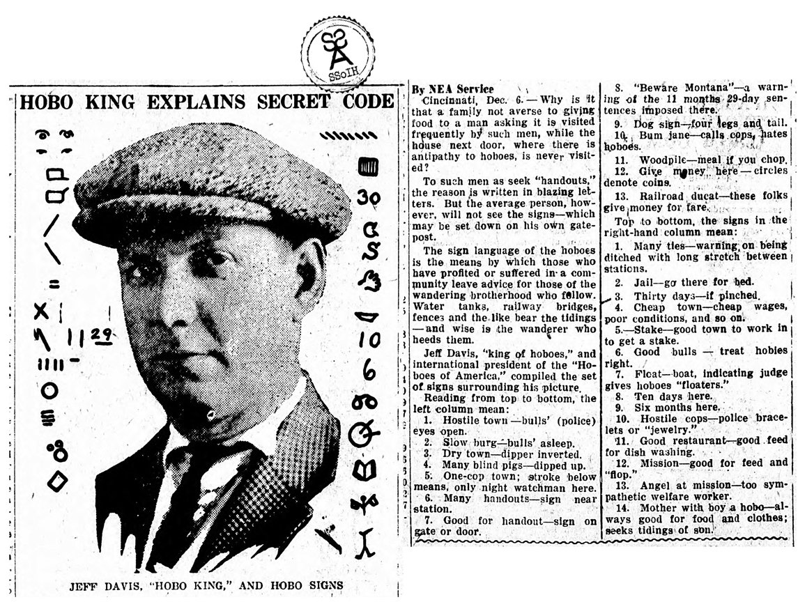 Jeff Davis, Hobo King, Explains Secret Code | Source Image |