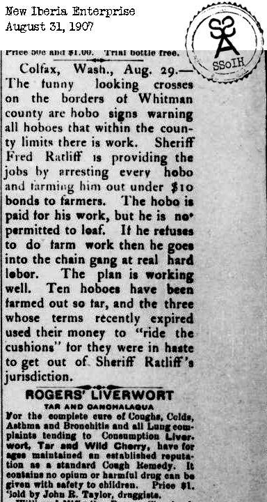 Hobos arrested and farmed out for work. Law symbols. Colfax, Washington Aug 31, 1907. | Source Image |