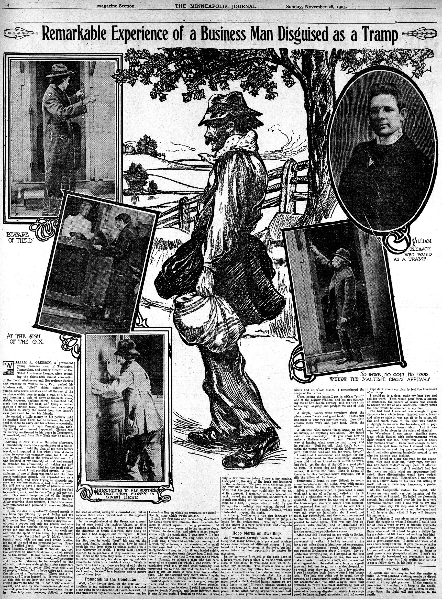 A Business man disguised as a tramp leans the Hobo Code of symbols. D = Dog or Danger, OX = At the sign of the OX is a good place to stop, and other signs. Torrington, Connecticut. Nov 26, 1905 ( CTRL-Mouse Wheel will zoom ) |
